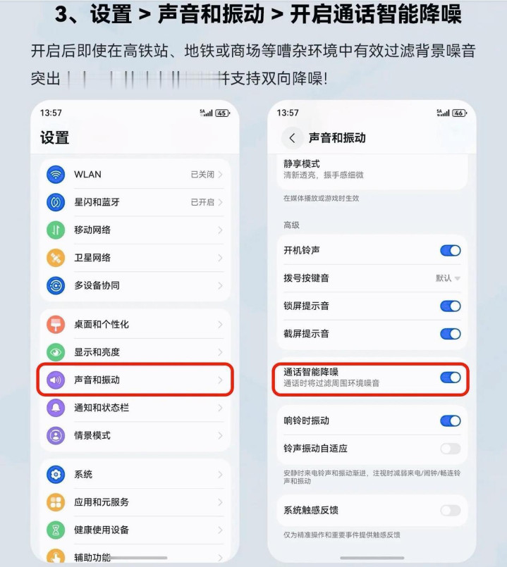 地铁、商场、车站这些高噪音环境,如果不开启通话降噪,对方听到的往往是环境声盖过人声。