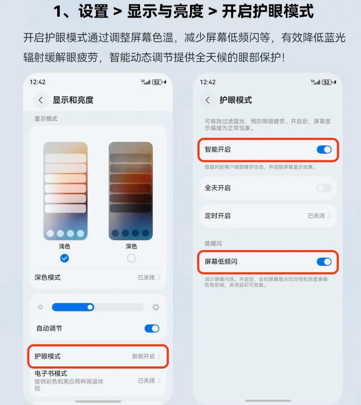 系统里的护眼模式并不只是简单调黄,它结合色温动态调节和低频闪优化,让屏幕在不同环境下自动匹配更舒适的显示状态。