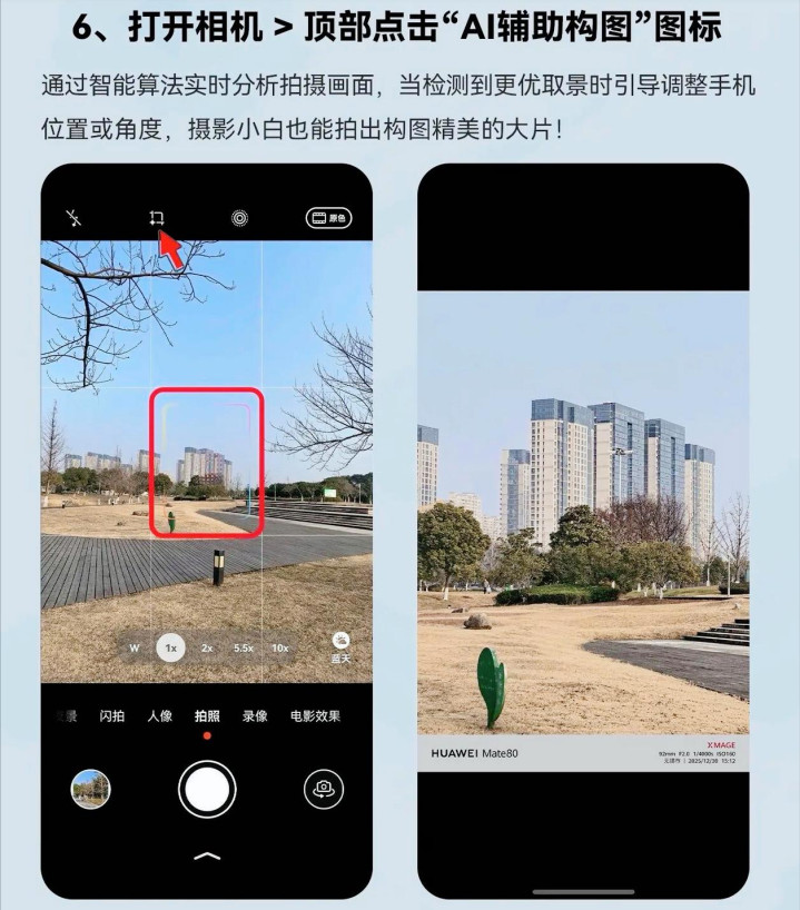 很多人觉得自己拍不出好照片,是镜头不够好。其实更多是构图问题。AI辅助构图并不是替你按快门,而是在你移动手机时实时给出画面边界引导。