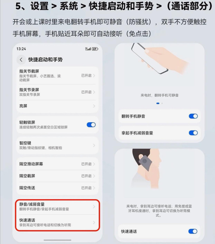 翻转静音、拿起减弱铃声、贴耳自动接听,这些功能的核心价值在于“隐蔽效率”。